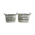 Enhance your garden decor with a Set of 2 Nested 'Organic & Local' Pot Planter Buckets. These oval-shaped buckets, made of iron in two sizes but with the same design, are perfect for adding a charming touch to your hallway, yard, or garden.