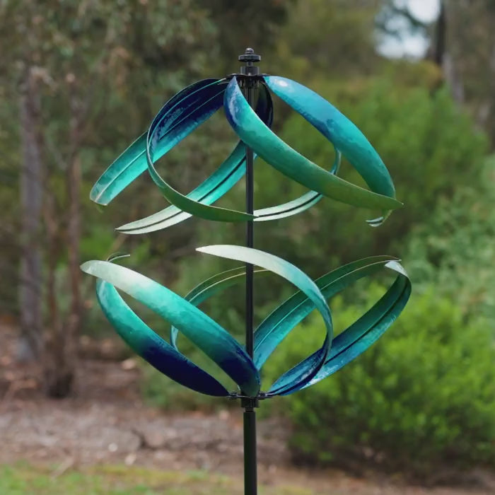 Wind Spin East West Blu Wave adds motion and visual appeal to your garden or courtyard, crafted to elevate your space. This striking piece serves as both a decorative and calming focal point, enhancing the charm, character, and beauty of any outdoor area. Watch as it gracefully spins with the breeze, creating a mesmerizing display that draws the eye and invites contemplation. Perfect for gardens, patios, courtyards, or balconies, it brings a sense of movement and tranquility to your landscape. Whether you're looking to add a finishing touch to an established garden or create a statement piece in a new space, this wind spinner combines artistic design with functional garden décor. Its dynamic presence encourages relaxation and mindfulness while complementing both modern and traditional garden styles.